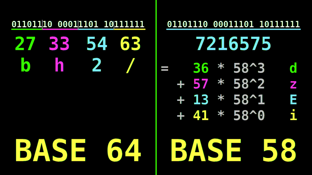4. Base58 is the general BaseN algorithm. Base64 is simpler because 64 and 256 are both powers of 2 and computers use binary.